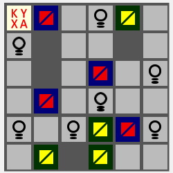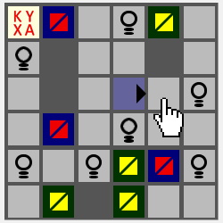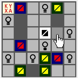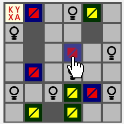 At the end of his turn, if a player has a chain of pieces connecting two lights which are on, the player will gain more pieces. Initially, they will be stacked on top of other pieces and must be downstacked.