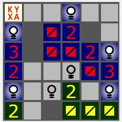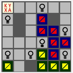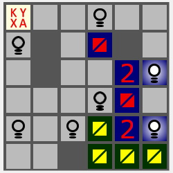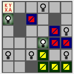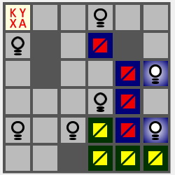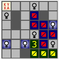 If a player, at the end of his turn, has a chain of pieces connecting five or more lights which all turn on, he wins the game.